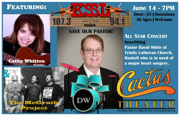 Musicians participating include Cathy Whitten and The McGrath Project among others. More musicians on the bill will be announced soon. Tickets are only $5 admission to cover house expenses. Donations for Pastor David White will be accepted at the concert in an old fashioned "passing of the hat" to help raise funds.