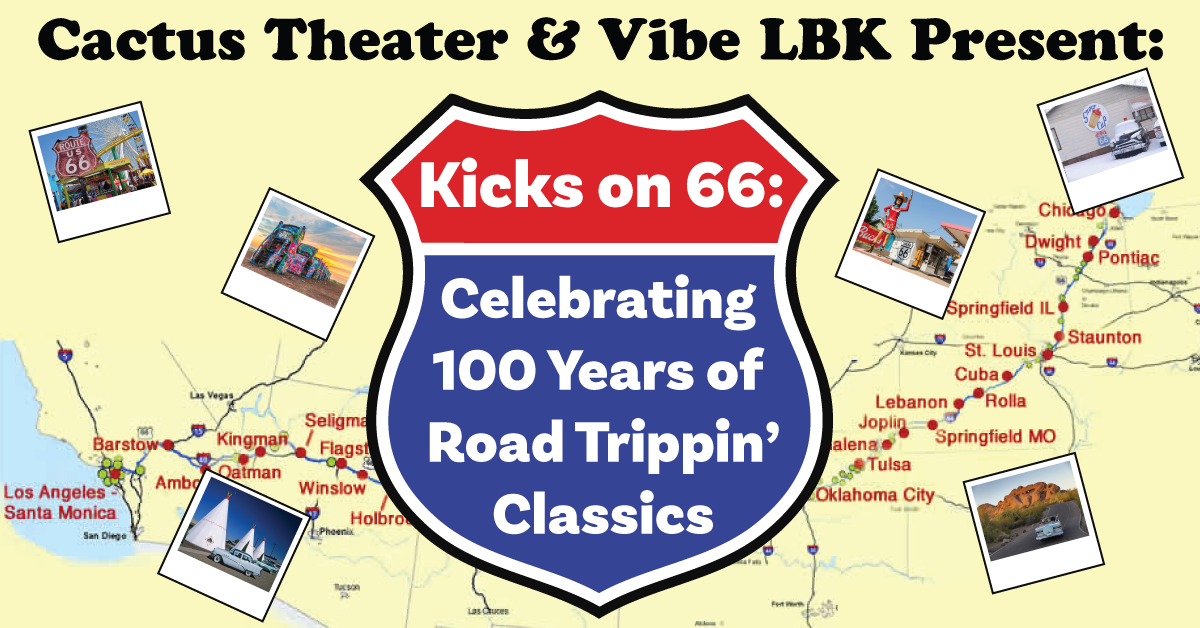 We’re celebrating the upcoming 100 year birthday of historic ROUTE 66 as the Cactus Theater and the world’s most versatile band - Vibe LBK - present an ALL-NEW production featuring classic tunes name-dropping the famous towns along The Mother Road.